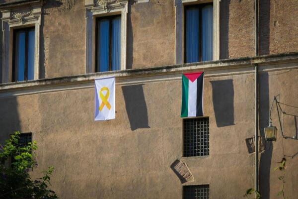 Roma espone la bandiera palestinese accanto a un fiocco giallo | Il gesto che divide: Pace o provocazione?
